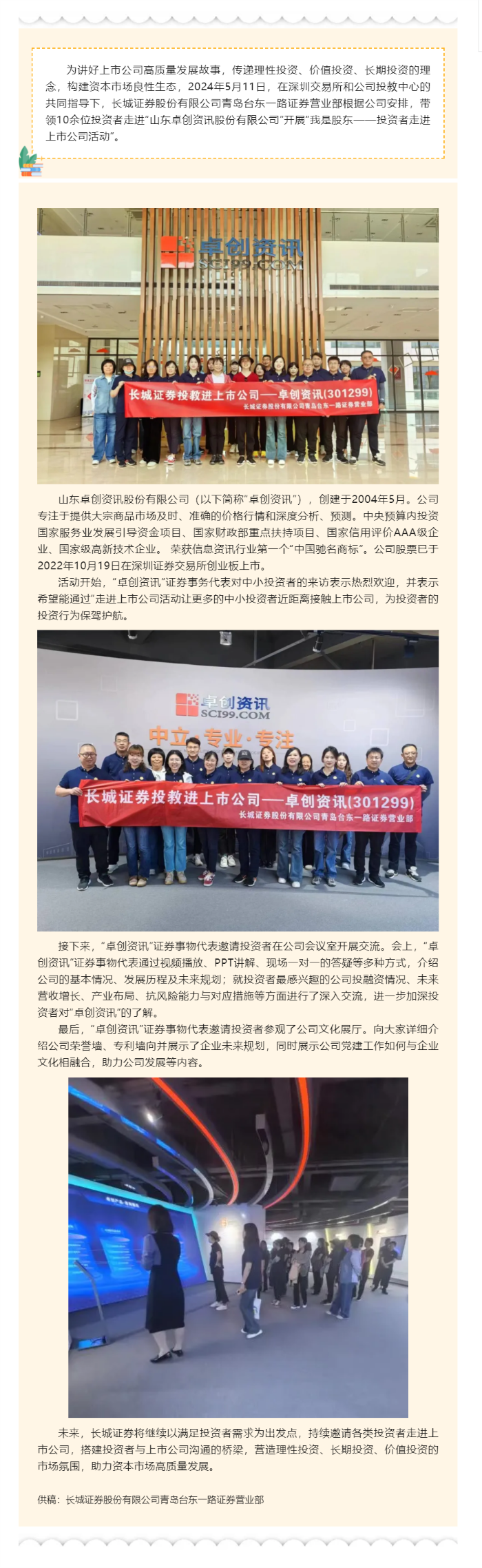 【城·活动】“我是股东”---长城证券带领中小投资者走进山东卓创资讯股份有限公司