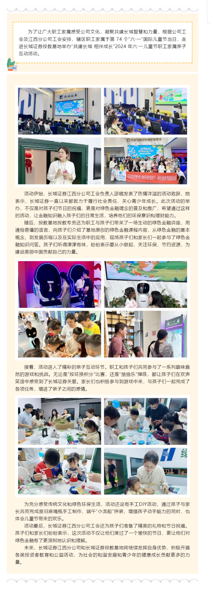 【城·活动】“共建长城 相伴成长”——长城证券江西分公司走进投教基地开展庆六一儿童节职工亲子暨绿色金