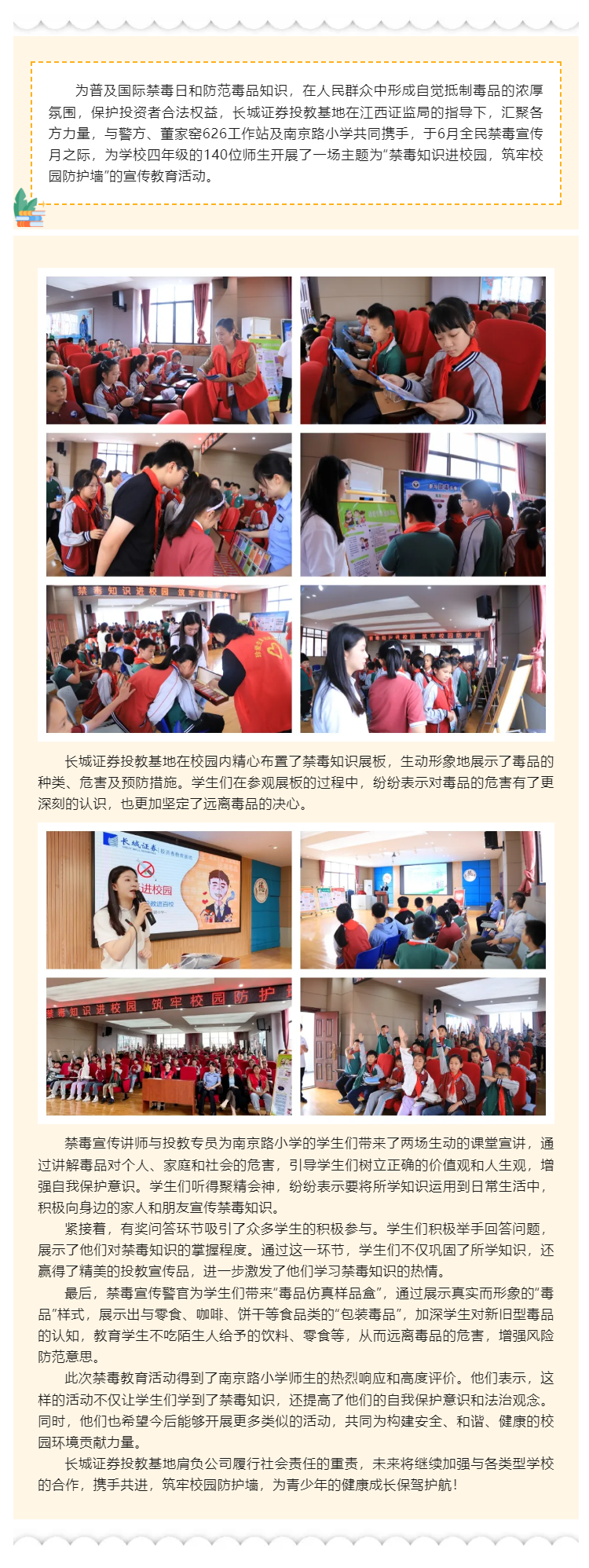 【城·活动】投教进百校_“禁毒知识进校园 筑牢校园防护墙”长城证券投教基地走进南京路小学开展投教活动