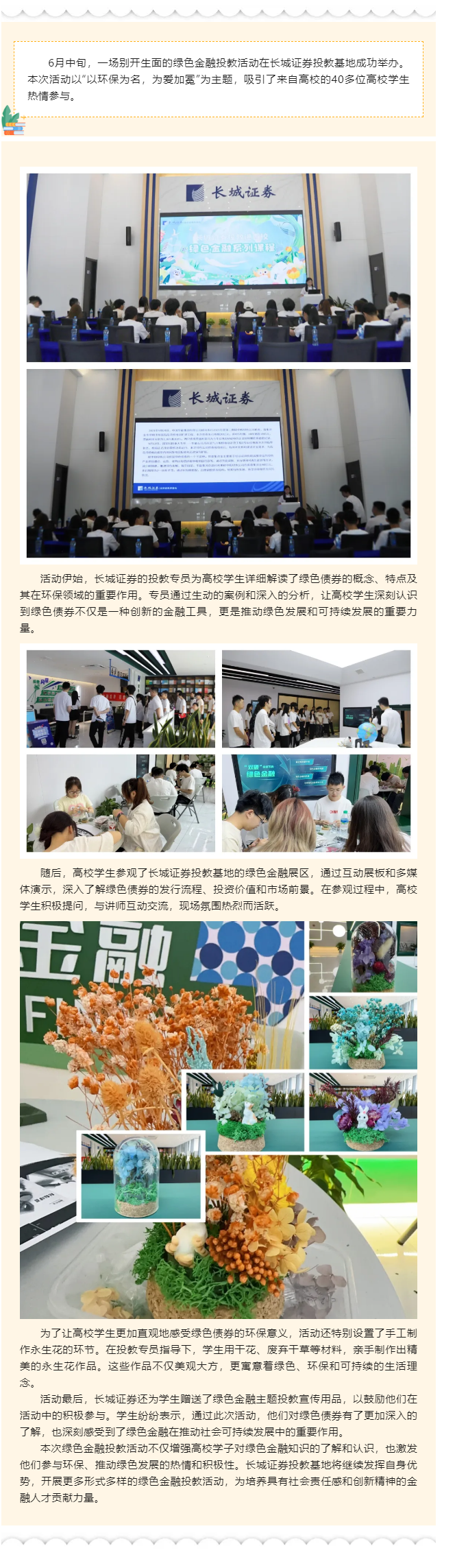 【城·活动】投教进百校_长城证券投教基地绿色金融之“以环保为名,为爱加冕”投教活动