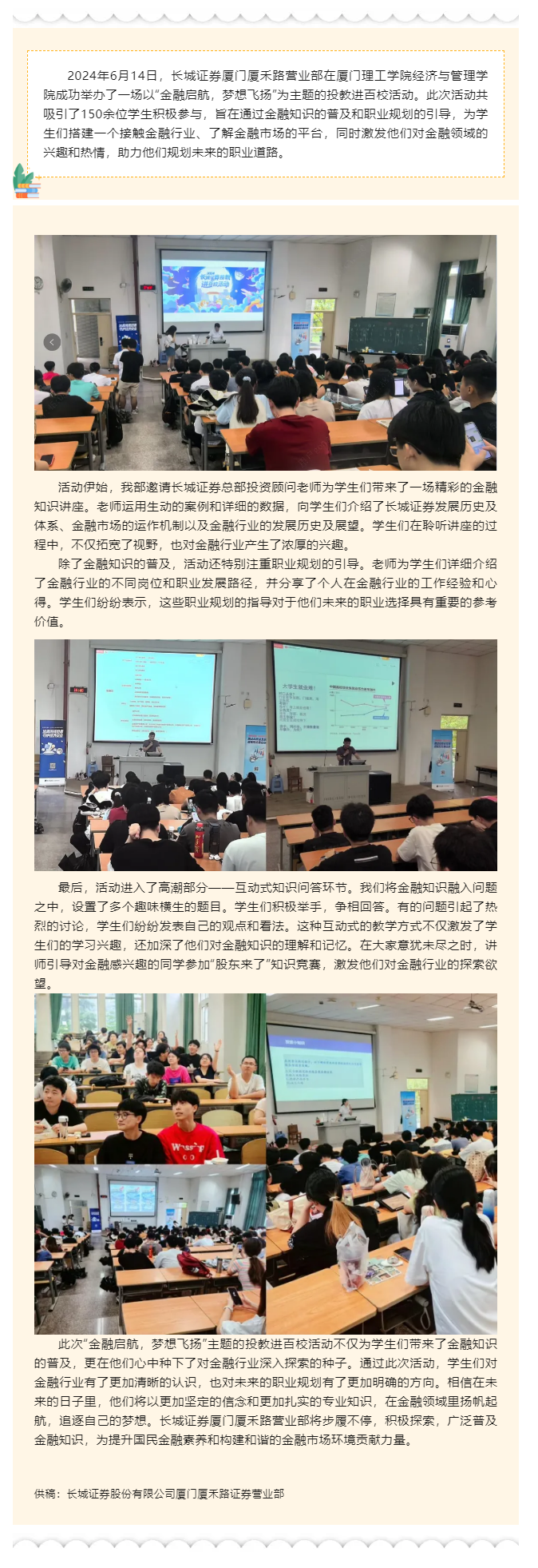 【城·活动】金融启航,梦想飞扬——厦门厦禾路营业部走进厦门理工学院
