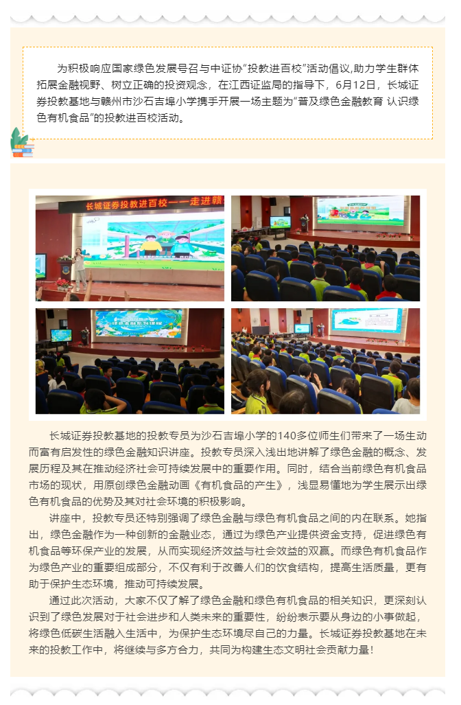 【城·活动】投教进百校_“共推绿色金融教育 倡导健康有机生活”-长城证券投教基地走进赣州市沙石吉埠小