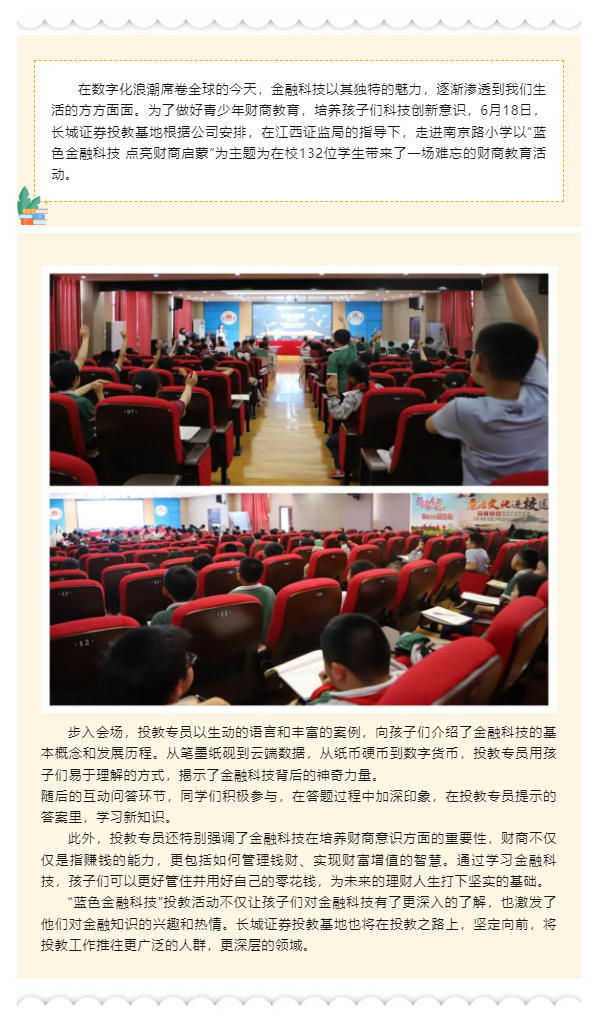 【城·活动】投教进百校_“蓝色金融科技 点亮财商启蒙”-长城证券投教基地走进南京路小学