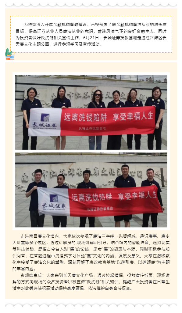 【城·活动】长城证券投教基地走进红谷滩区长天廉文化主题公园