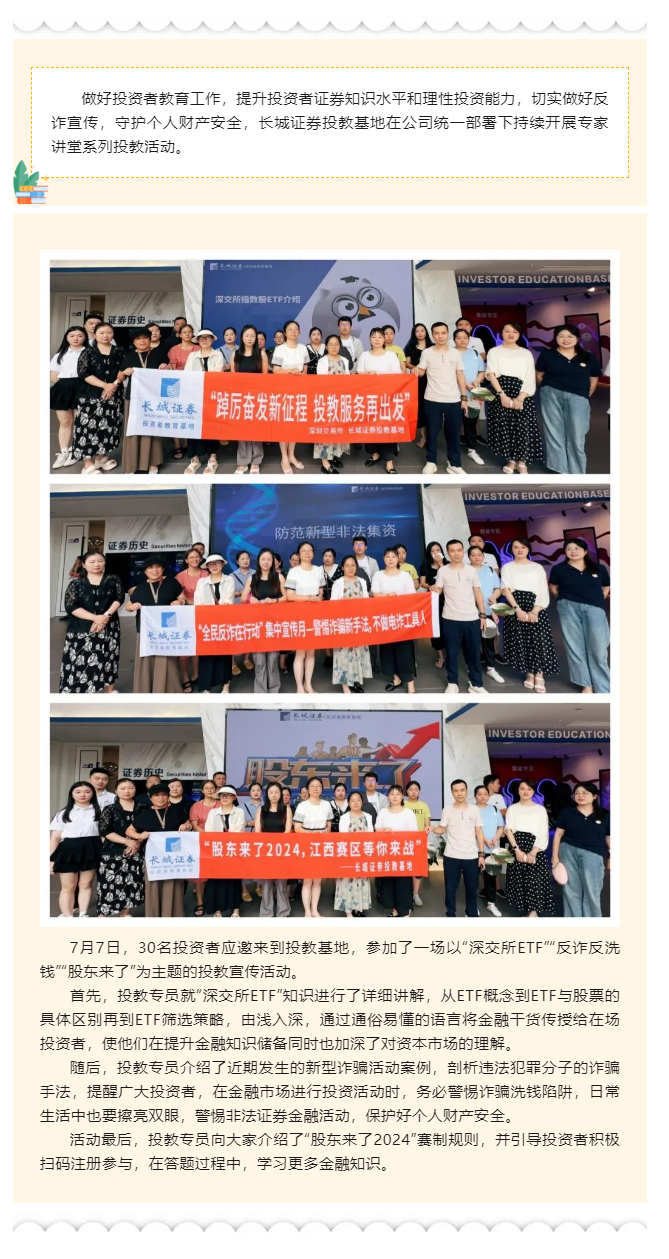 【城·活动】“踔厉奋发新征程 投教服务再出发”“反诈”“股东来了”——长城证券专家讲堂系列投教活动