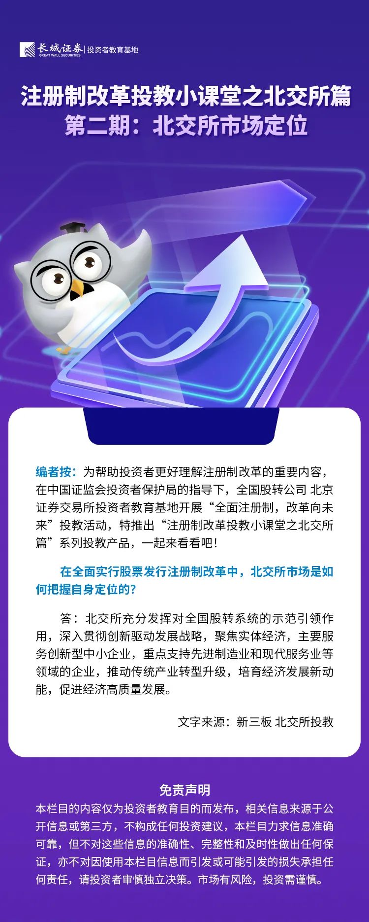 【长·原创】注册制改革投教小课堂之北交所篇丨第二期:北交所市场定位