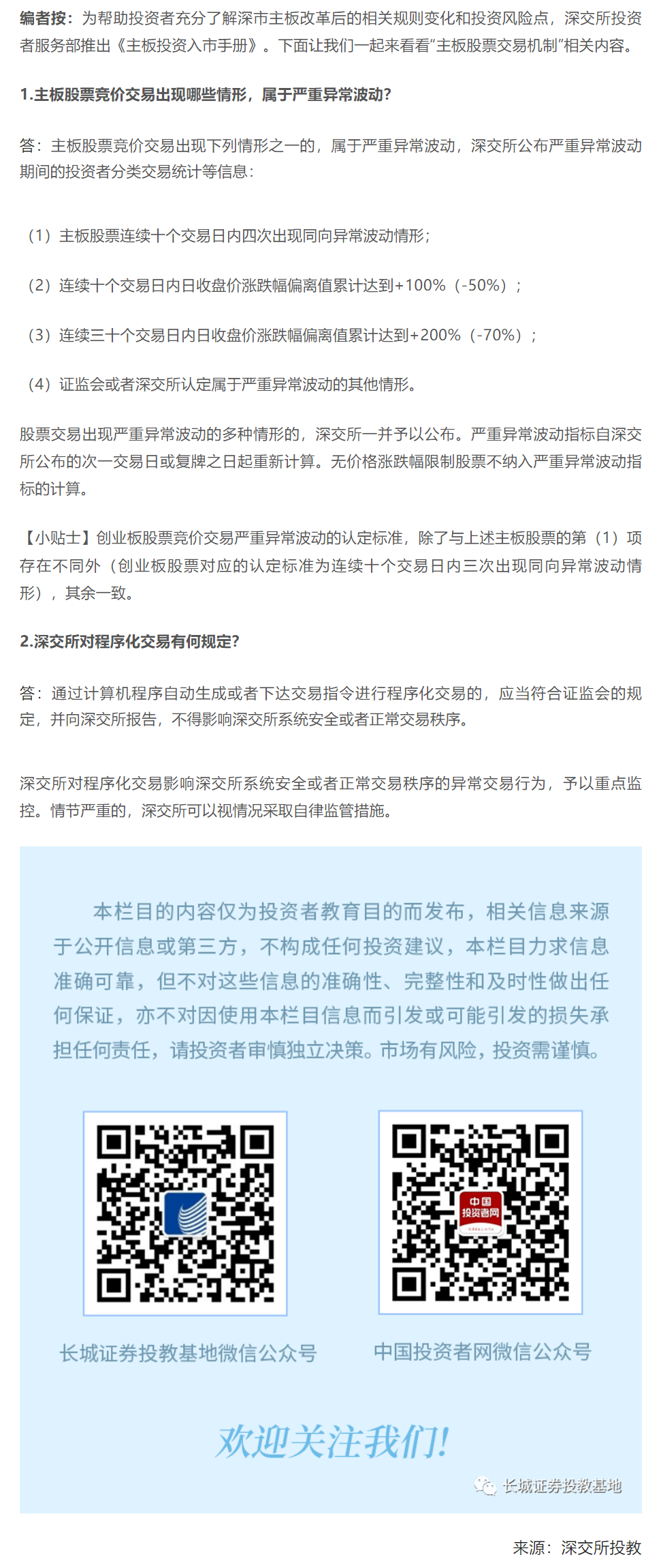 【深交所投教】全面实行注册制丨主板投资入市手册(十九):主板股票交易机制(七)