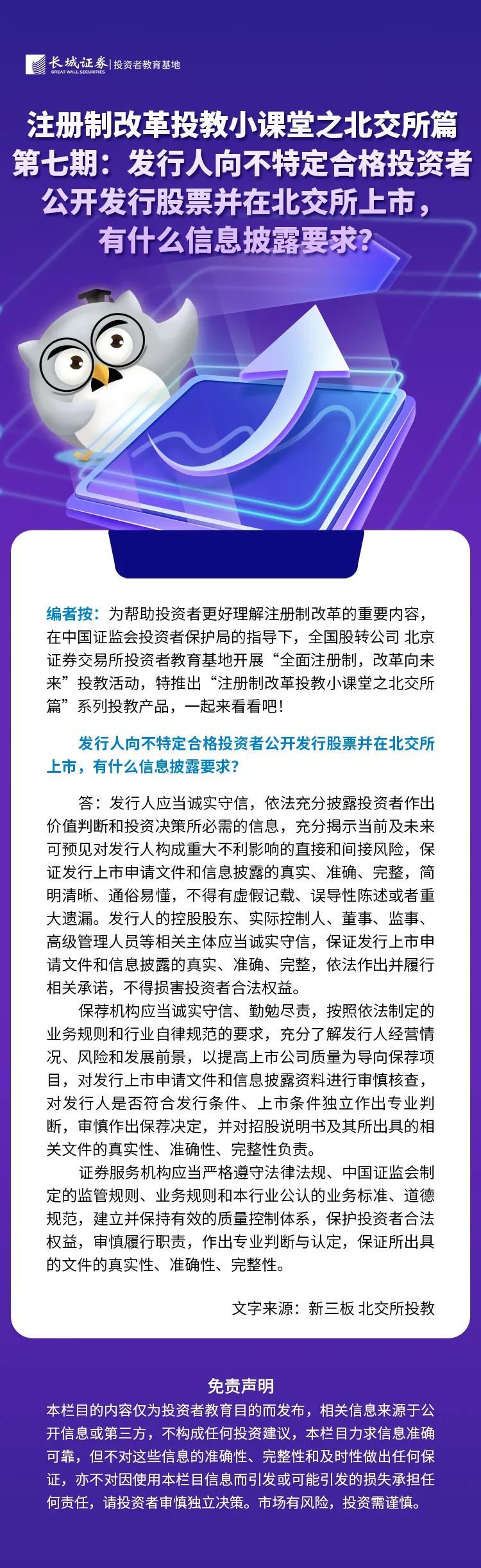 【长·原创】注册制改革投教小课堂之北交所篇丨第七期:发行人向不特定合格投资者公开发行股票并在北交所上市,有什么信息披露要求?