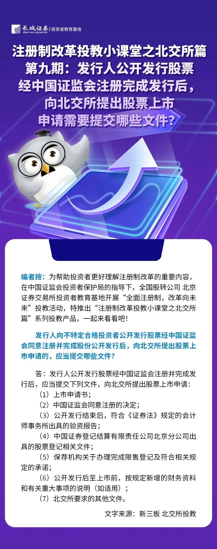 【金融知识宣传月】第九期:发行人公开发行股票经中国证监会注册完成发行后,向北交所提出股票上市申请需要提交哪些文件?